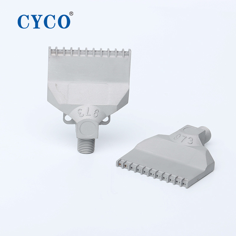 本產(chǎn)品可噴出高沖力、扇形和圓形的空氣流,專為工藝處理中的各種吹風(fēng)應(yīng)用而設(shè)計。噴嘴設(shè)計有多個柱形噴射氣孔,空氣由此吹出而形成扇形和圓形空氣流。