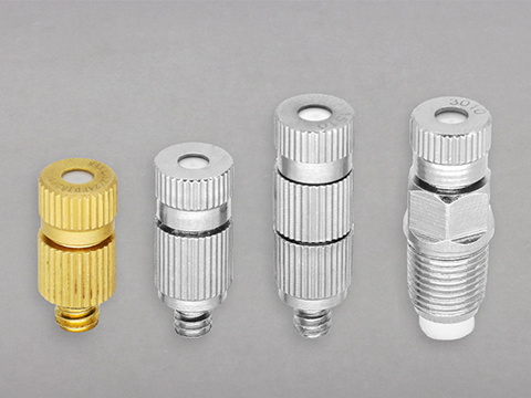3、此種噴嘴噴孔是使用美國(guó)精密打孔機(jī)打孔,孔徑在0.1mm-0.5mm之間,制作精良,使用成本與氣加濕相比,節(jié)省10倍以上