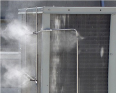 噴淋外機(jī)降溫系統(tǒng)通過(guò)在空調(diào)外機(jī)上安裝噴淋裝置,利用水噴淋的方式直接對(duì)外機(jī)進(jìn)行降溫。在高溫天氣條件下,通過(guò)噴水降低室外機(jī)的溫度,從而提高其制冷效率和降低能耗。噴淋過(guò)程中,水蒸發(fā)時(shí)會(huì)吸收周圍環(huán)境的熱量,進(jìn)而達(dá)到降溫的效果。