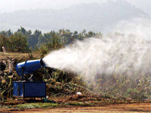 霧炮機可以實現(xiàn)將水霧送到遠距離的效果,并在空氣中大面積的漂浮一段時間。